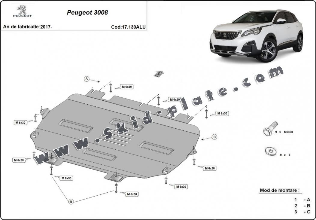 Aluminium skid plate for Peugeot 3008 (2017-2026)