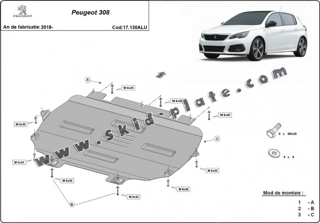 Aluminium skid plate for Peugeot 308 (2018-2026)