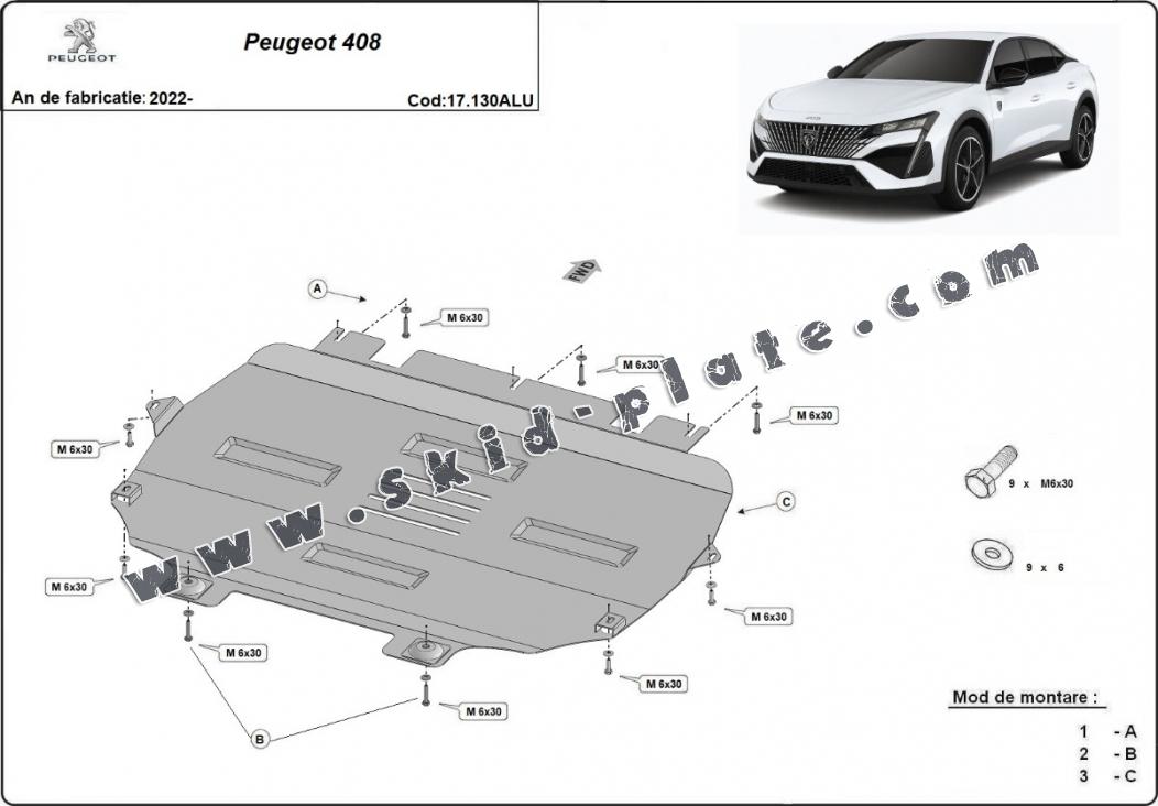Aluminium skid plate for Peugeot 408 (2022-2026)