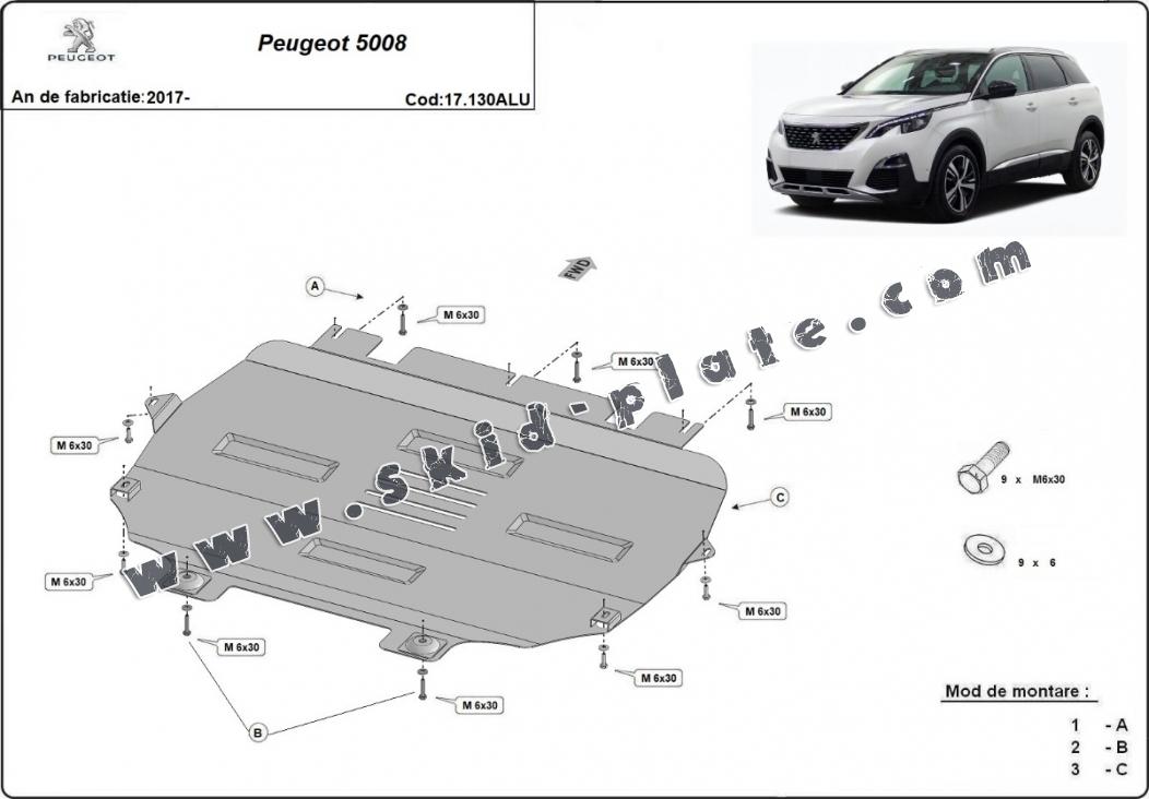 Aluminium skid plate for Peugeot 5008 (2017-2026)