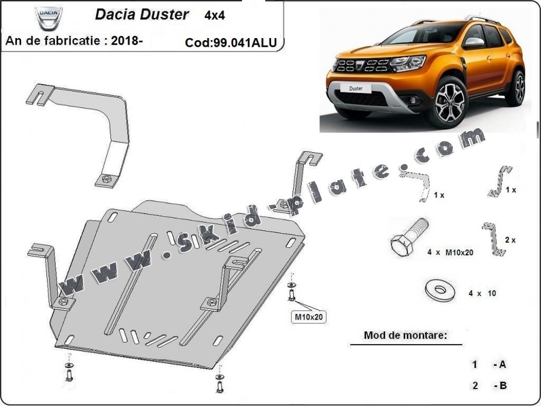 Aluminum fuel tank skid plate for Dacia Duster (2010-2024)