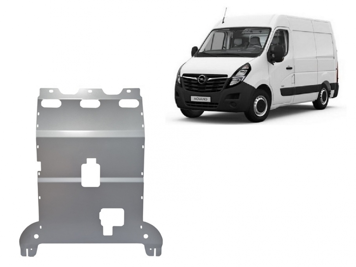 Skid plate for the protection of the: engine, gearbox, radiator . The skid plate is new and fits perfectly for all versions of Opel Movano manufactured between 2022 and 2026. Made out of 4 mm thick Aluminium plate. The shields are made of aluminum, but the mounting brackets are made of steel. Screws, nuts, clips, all fastening accessories are included. All skid plates are powder coated to prevent corrosion. The exterior of the skid plate is provided with Aluminium reinforcements, which increases the resistance to impact. |