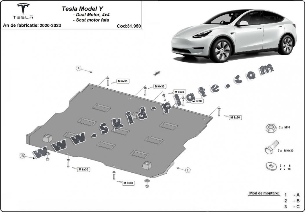 Front electric motor skid plate for Tesla Model Y AWD (2020-2023)