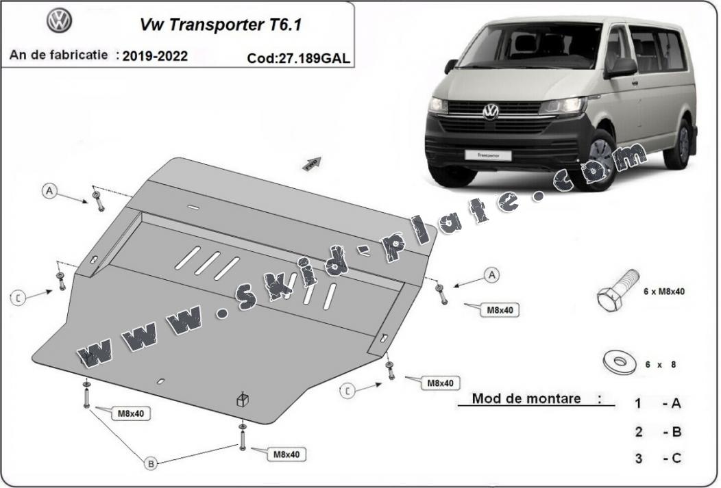Galvanized steel skid plate for Volkswagen Transporter T6.1 (2019-2022)