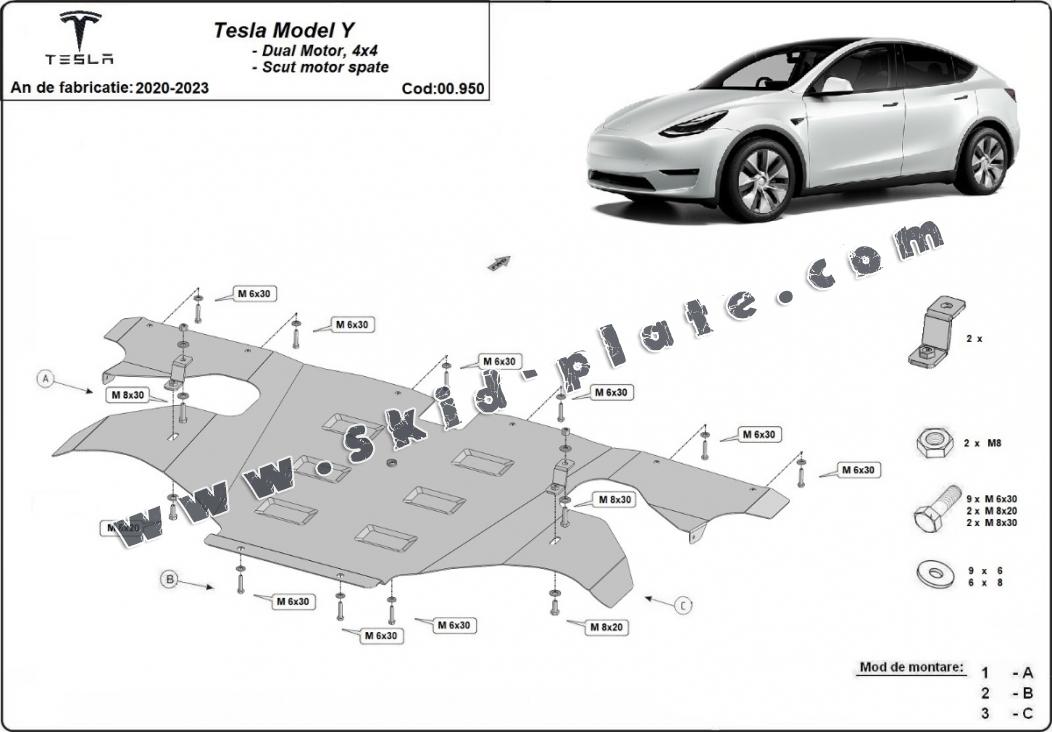 Rear electric motor skid plate for Tesla Model Y AWD (2020-2023)