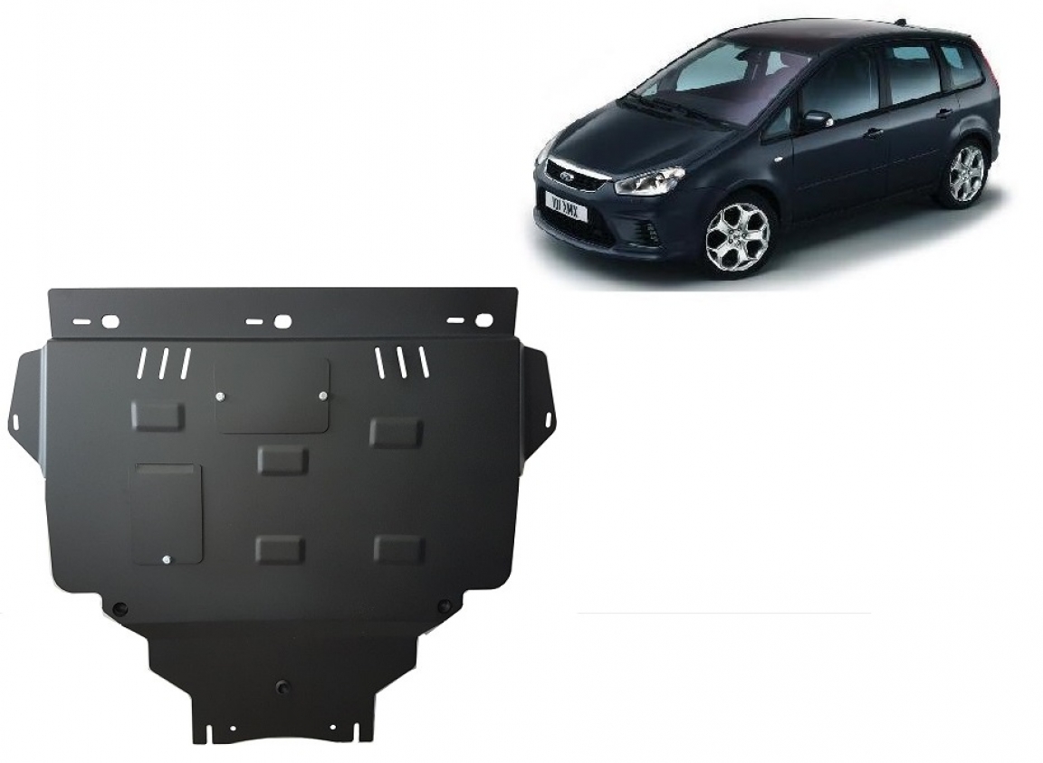 Skid plate for the protection of the: engine, gearbox, radiator . The skid plate is new and fits perfectly for all versions of Ford C - Max manufactured between 2004 and 2010. It has an opening for the oil sump, so it's removal won't be necessary to change the oil. Made out of 2 mm thick Steel plate. Screws, nuts, clips, all fastening accessories are included. All skid plates are powder coated to prevent corrosion. The exterior of the skid plate is provided with Steel reinforcements, which increases the resistance to impact. |