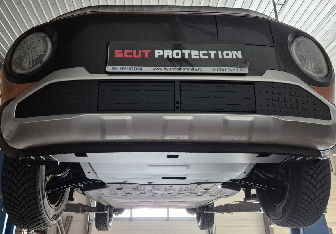 Skid plate for the protection of the: engine, gearbox . The skid plate is new and fits perfectly for all versions of Hyundai Inster manufactured between 2024 and 2026. Made out of 2 mm thick Steel plate. Screws, nuts, clips, all fastening accessories are included. All skid plates are powder coated to prevent corrosion. The exterior of the skid plate is provided with Steel reinforcements, which increases the resistance to impact. |