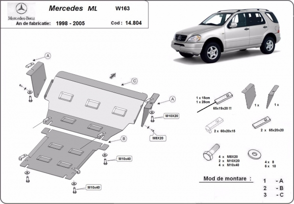 Steel skid plate for Mercedes ML W163 (1998-2005)
