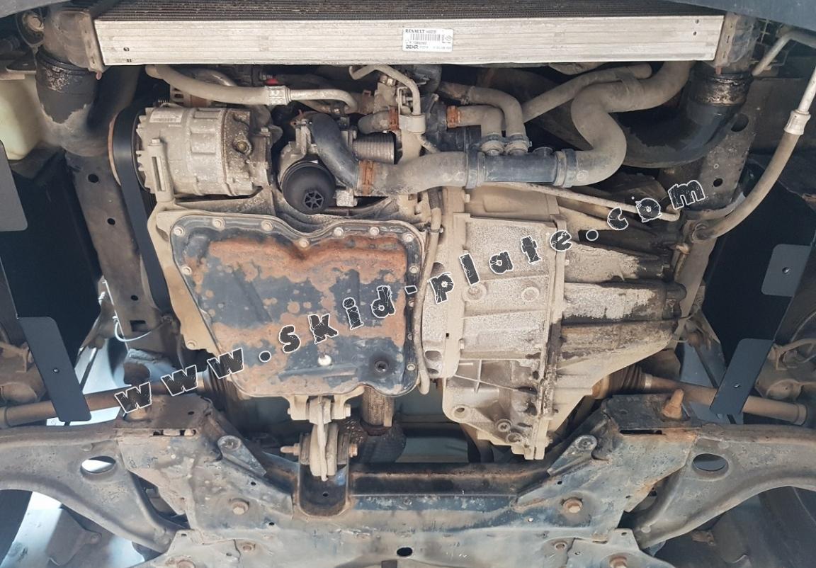 Skid plate for the protection of the: engine, gearbox, radiator, front bumper . The skid plate is new and fits perfectly for all versions of Nissan NV400 manufactured between 2010 and 2021. Made out of 2 mm thick Steel plate. Screws, nuts, clips, all fastening accessories are included. All skid plates are powder coated to prevent corrosion. The exterior of the skid plate is provided with Steel reinforcements, which increases the resistance to impact. |