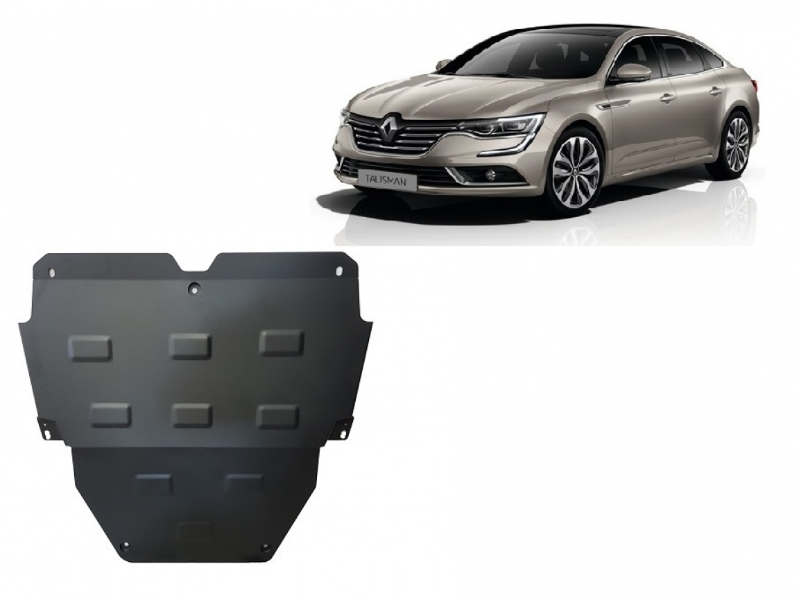 Skid plate for the protection of the: engine, gearbox . The skid plate is new and fits perfectly for all versions of Renault Talisman manufactured between 2016 and 2022. Made out of 2 mm thick Steel plate. Screws, nuts, clips, all fastening accessories are included. All skid plates are powder coated to prevent corrosion. The exterior of the skid plate is provided with Steel reinforcements, which increases the resistance to impact. |