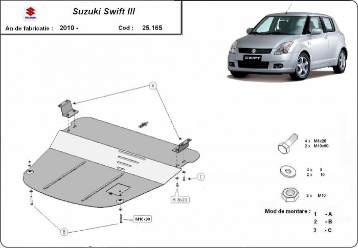 Steel skid plate for Suzuki Swift 3 (2010-2017)