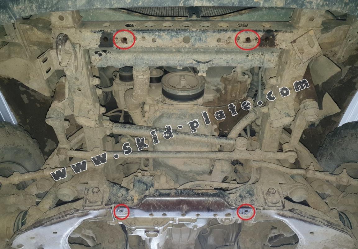 Skid plate for the protection of the: engine . The skid plate is new and fits perfectly for all versions of Toyota Hilux manufactured between 2000 and 2004. Made out of 3 mm thick Steel plate. Screws, nuts, clips, all fastening accessories are included. All skid plates are powder coated to prevent corrosion. The exterior of the skid plate is provided with Steel reinforcements, which increases the resistance to impact. |