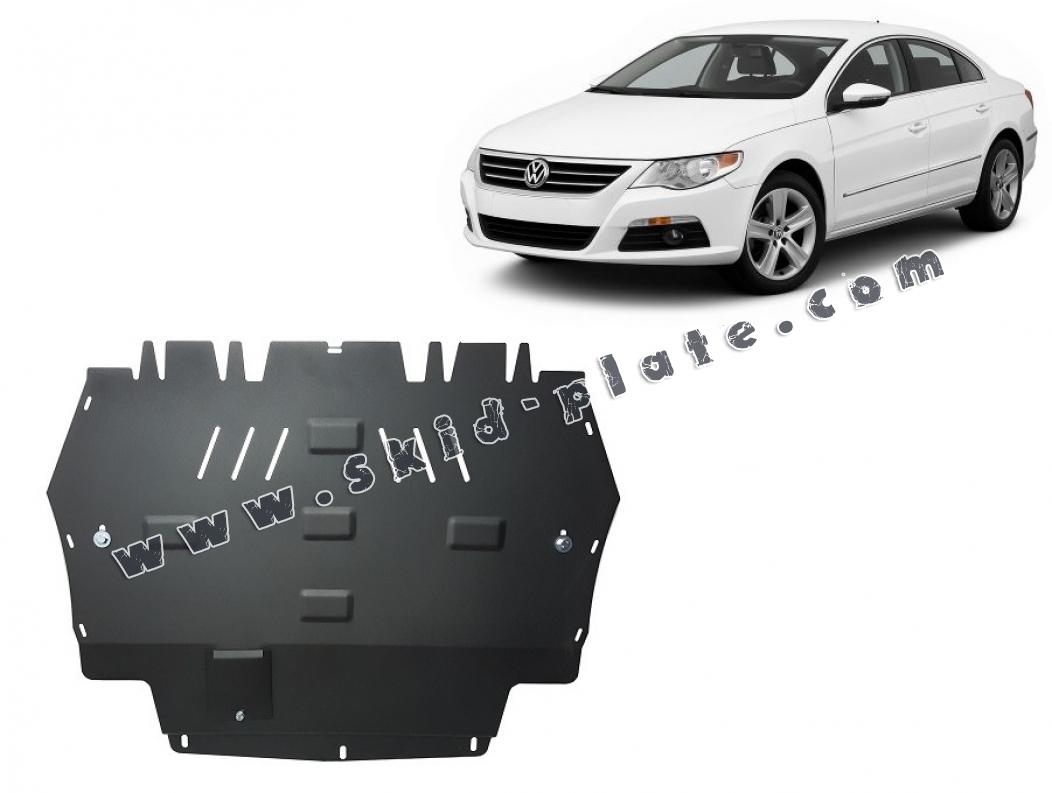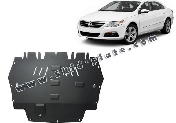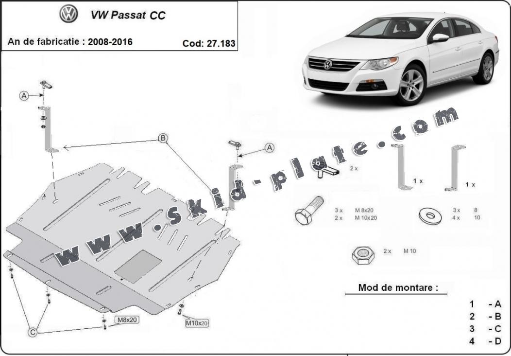 Skid plate for the protection of the: engine, gearbox, radiator, front bumper . The skid plate is new and fits perfectly for the VW Passat CC, with the following engine/drive versions: 2.0 TFSI quattro,1.9-2.0,Tdi, - manufactured between 2008 and 2016. It has an opening for the oil sump, so it's removal won't be necessary to change the oil. Made out of 2 mm thick Steel plate. Screws, nuts, clips, all fastening accessories are included. All skid plates are powder coated to prevent corrosion. The exterior of the skid plate is provided with Steel reinforcements, which increases the resistance to impact. |