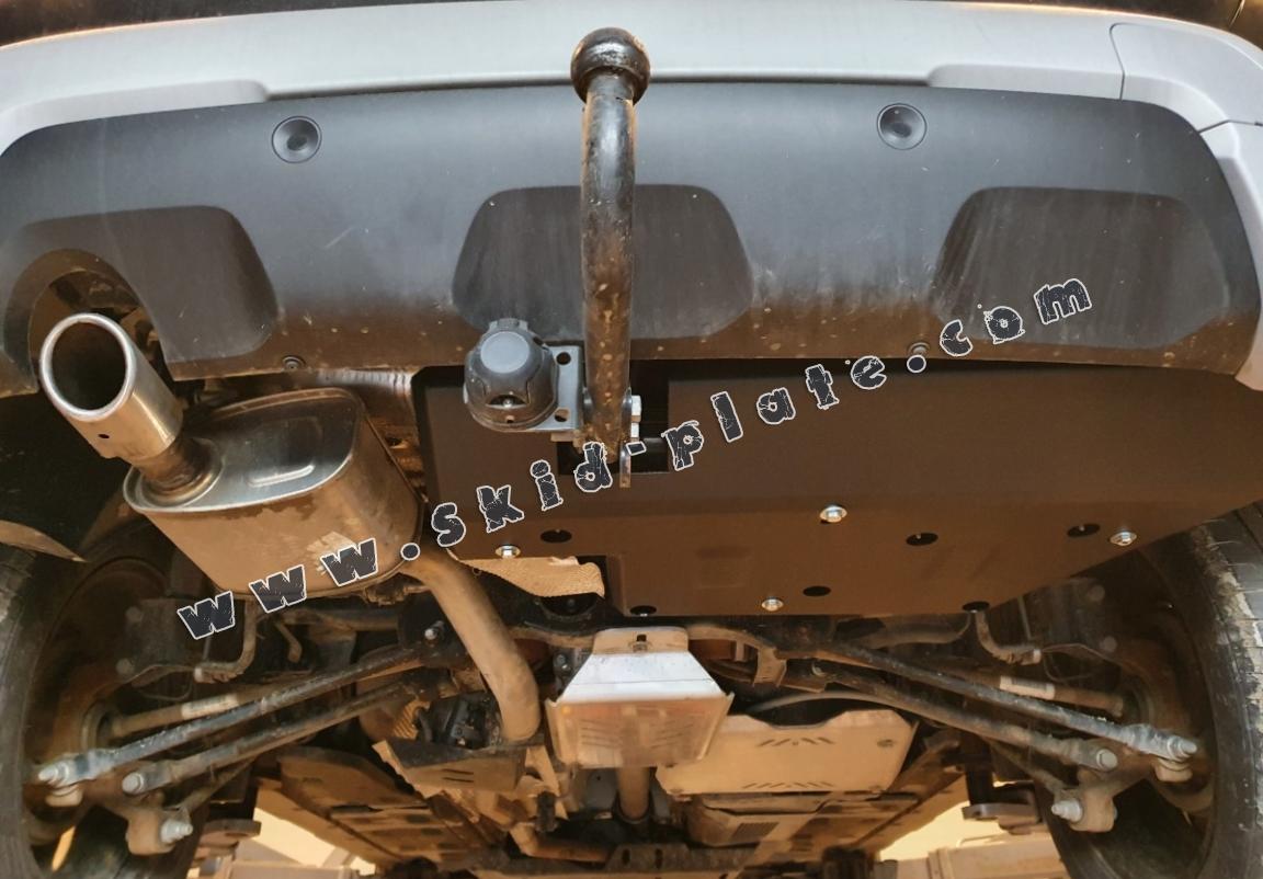Skid plate for the protection of the: fuel tank AdBlue . The skid plate is new and fits perfectly for all versions of Dacia Duster manufactured between 2018 and 2026. Made out of 2 mm thick Steel plate. Screws, nuts, clips, all fastening accessories are included. All skid plates are powder coated to prevent corrosion. The exterior of the skid plate is provided with Steel reinforcements, which increases the resistance to impact. |