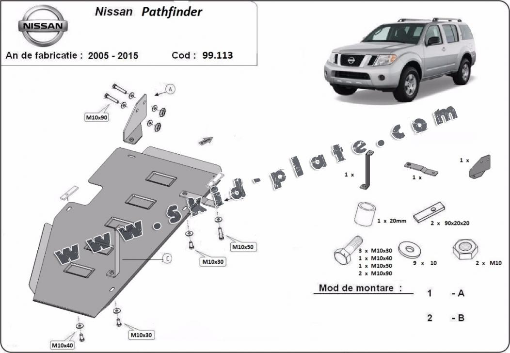 Steel gearbox and differential skid plate for Nissan Pathfinder