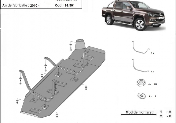 Steel fuel tank skid plate for Volkswagen Amarok - Only for versions without factory protections (2010-2022)
