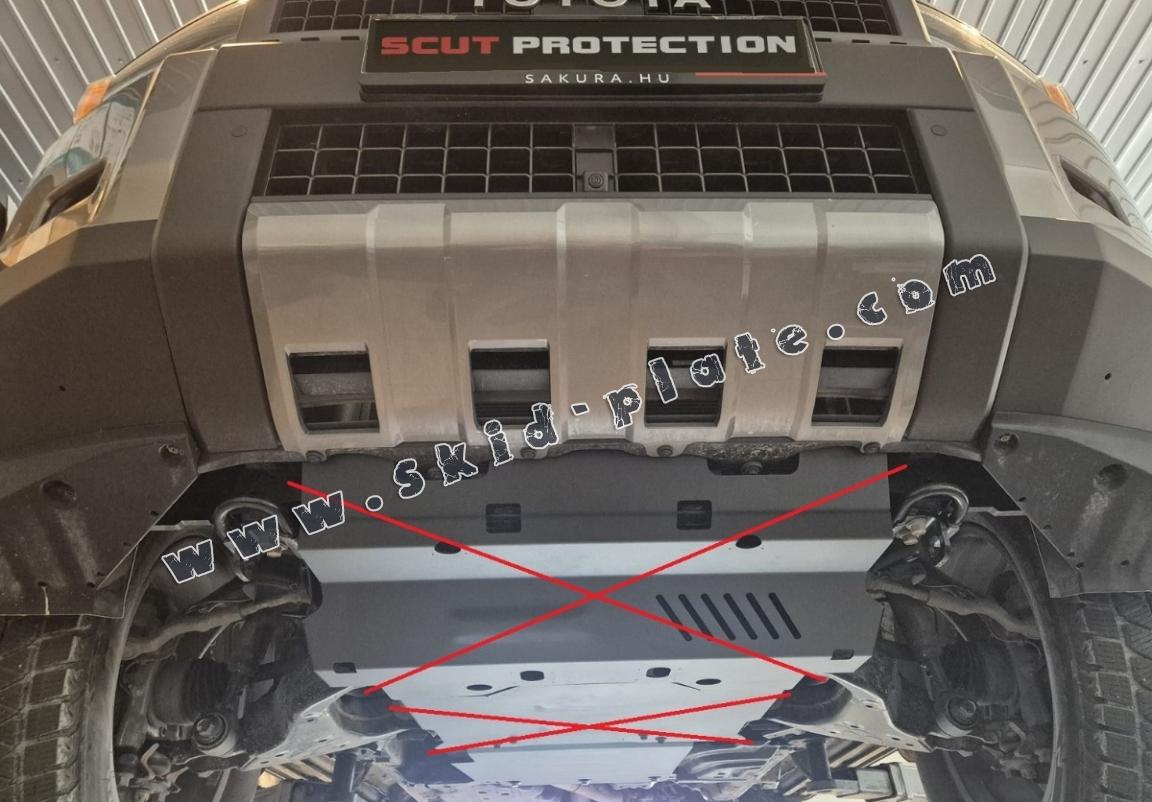 Skid plate for the protection of the: gearbox, Transfer case . The skid plate is new and fits perfectly for all versions of Toyota Land Cruiser 250 manufactured between 2024 and 2026. Made out of 3 mm thick Steel plate. Screws, nuts, clips, all fastening accessories are included. All skid plates are powder coated to prevent corrosion. The exterior of the skid plate is provided with Steel reinforcements, which increases the resistance to impact. |