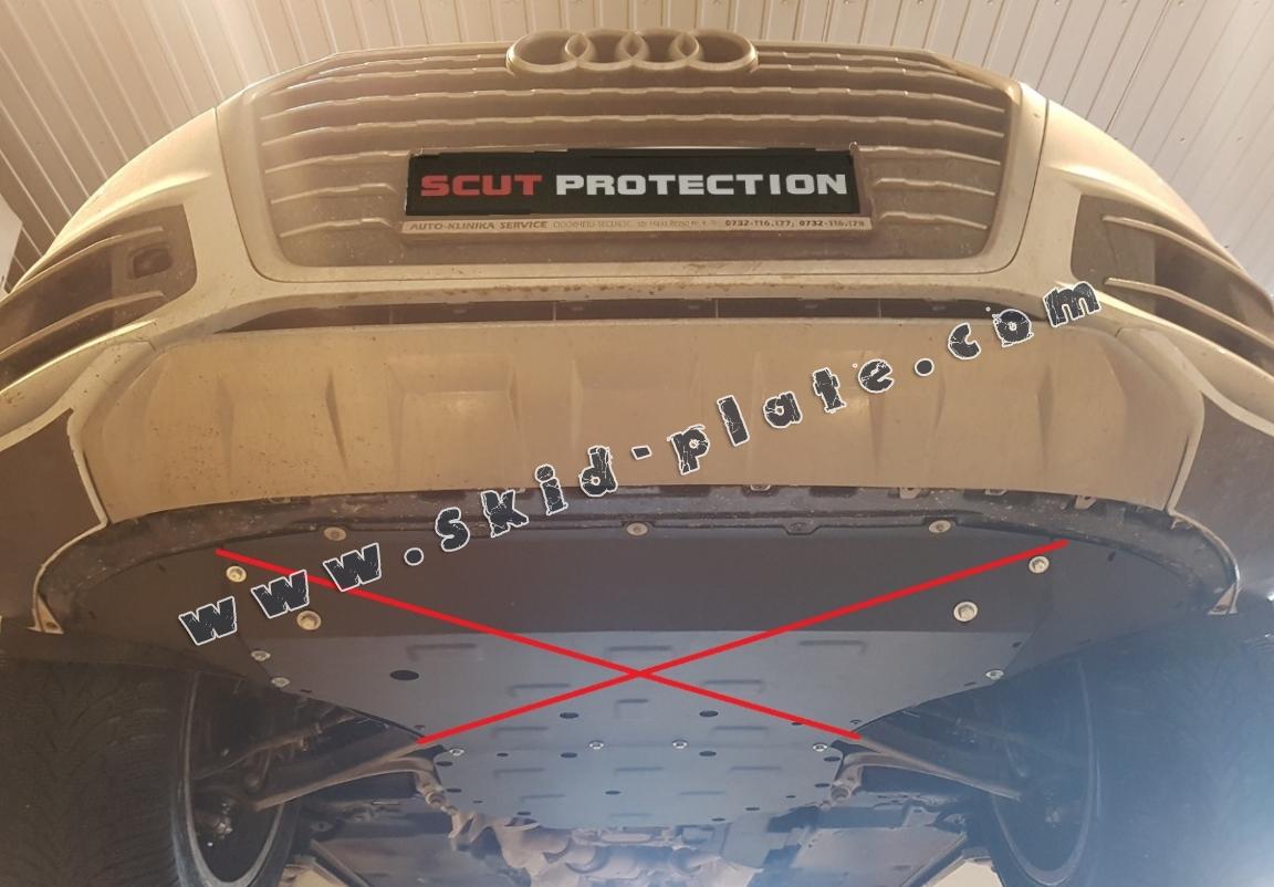 Skid plate for the protection of the: gearbox . The skid plate is new and fits perfectly for all versions of VW Touareg manufactured between 2018 and 2026. Made out of 2 mm thick Steel plate. Screws, nuts, clips, all fastening accessories are included. All skid plates are powder coated to prevent corrosion. The exterior of the skid plate is provided with Steel reinforcements, which increases the resistance to impact. |
