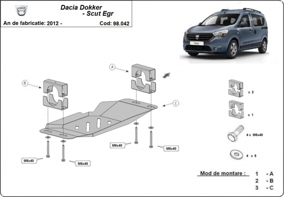 Steel skid plate for Stop&Go system, EGR Dacia Dokker (2012-2026)