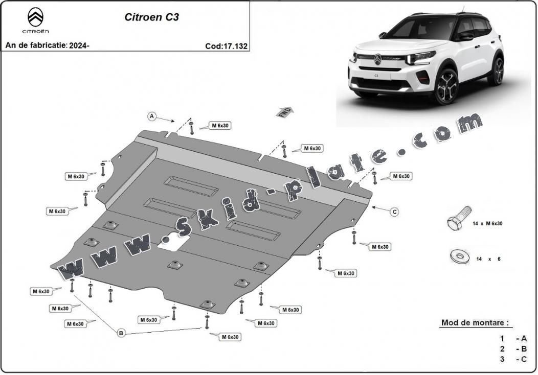 Steel skid plate for the protection of the engine and the gearbox for Citroen C3 (2024-2026)