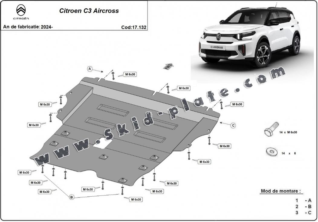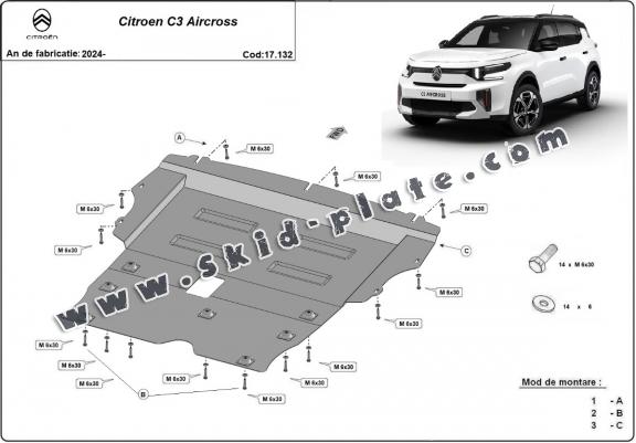 Steel skid plate for the protection of the engine and the gearbox for Citroen C3 Aircross (2024-2026)