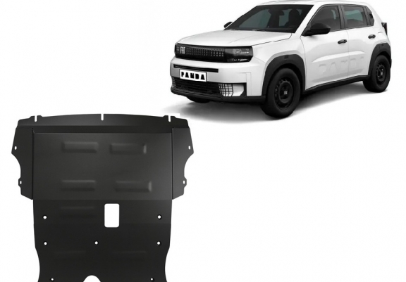 Skid plate for the protection of the: engine, gearbox . The skid plate is new and fits perfectly for all versions of Fiat Grande Panda manufactured between 2025 and 2026. Made out of 2 mm thick Steel plate. Screws, nuts, clips, all fastening accessories are included. All skid plates are powder coated to prevent corrosion. The exterior of the skid plate is provided with Steel reinforcements, which increases the resistance to impact. |