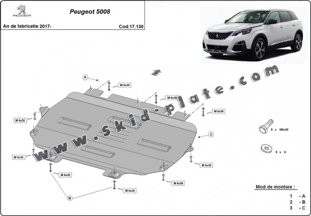Steel skid plate for the protection of the engine and the gearbox for Peugeot 5008 (2017-2025)